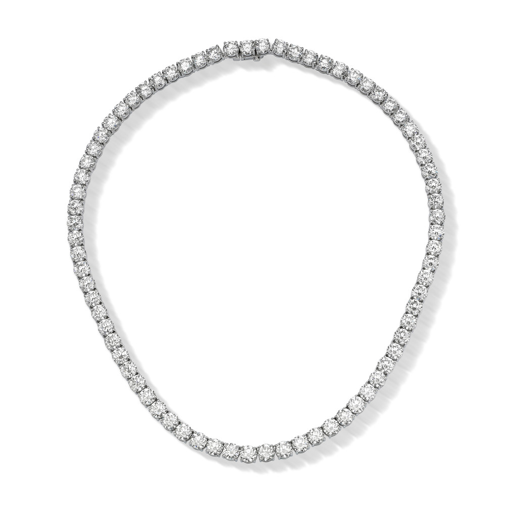 COLLIER SET WITH 74 ROUND BRILLIANT LG DIAMONDS, A TOTAL OF 53.97 CARAT, D-F COLOR, VVS CLARITY. IN 14 KARAT WHITE GOLD