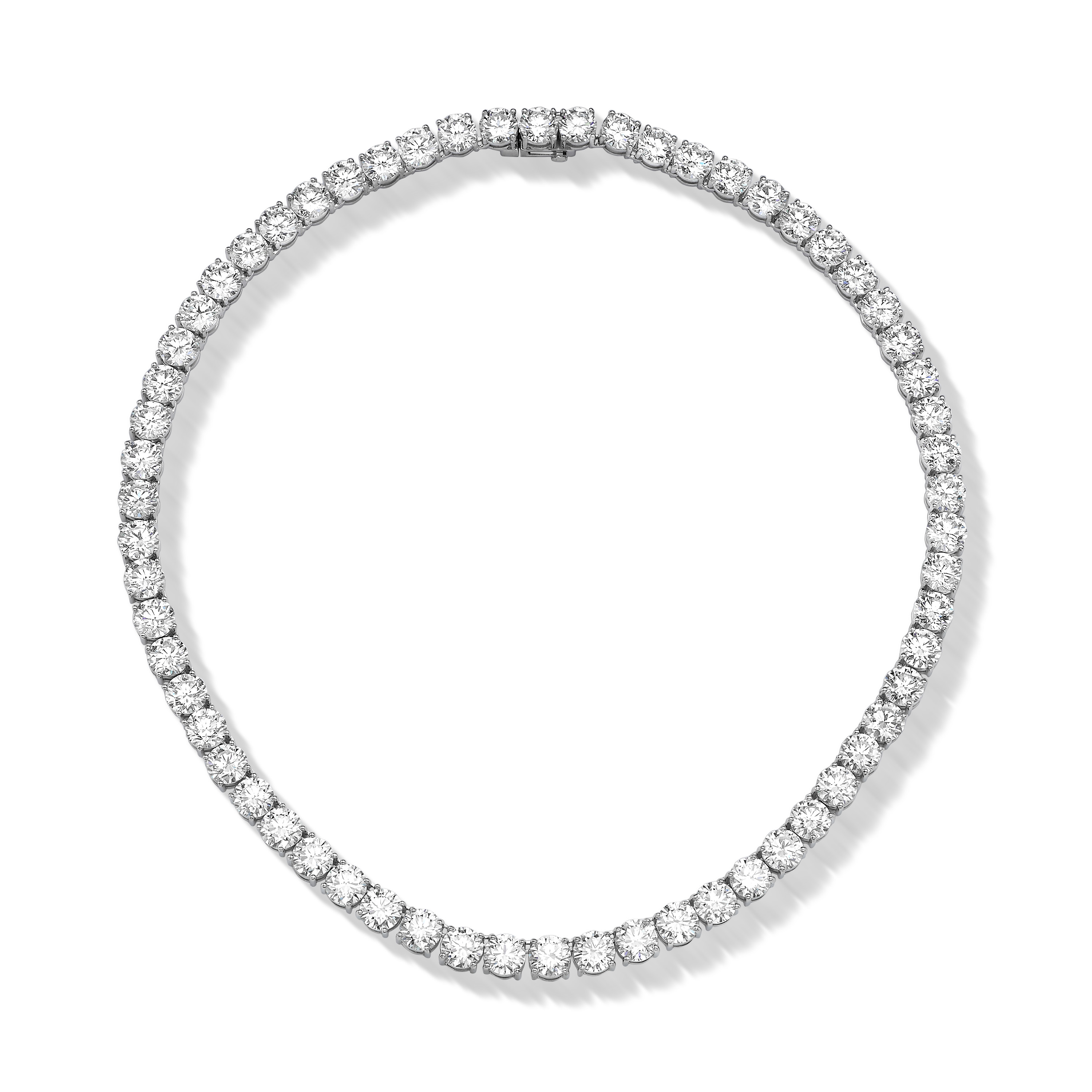 COLLIER SET WITH 62 ROUND BRILLIANT LG DIAMONDS, A TOTAL OF 64.33 CARAT, D-F COLOR, VVS CLARITY. IN 14 KARAT WHITE GOLD