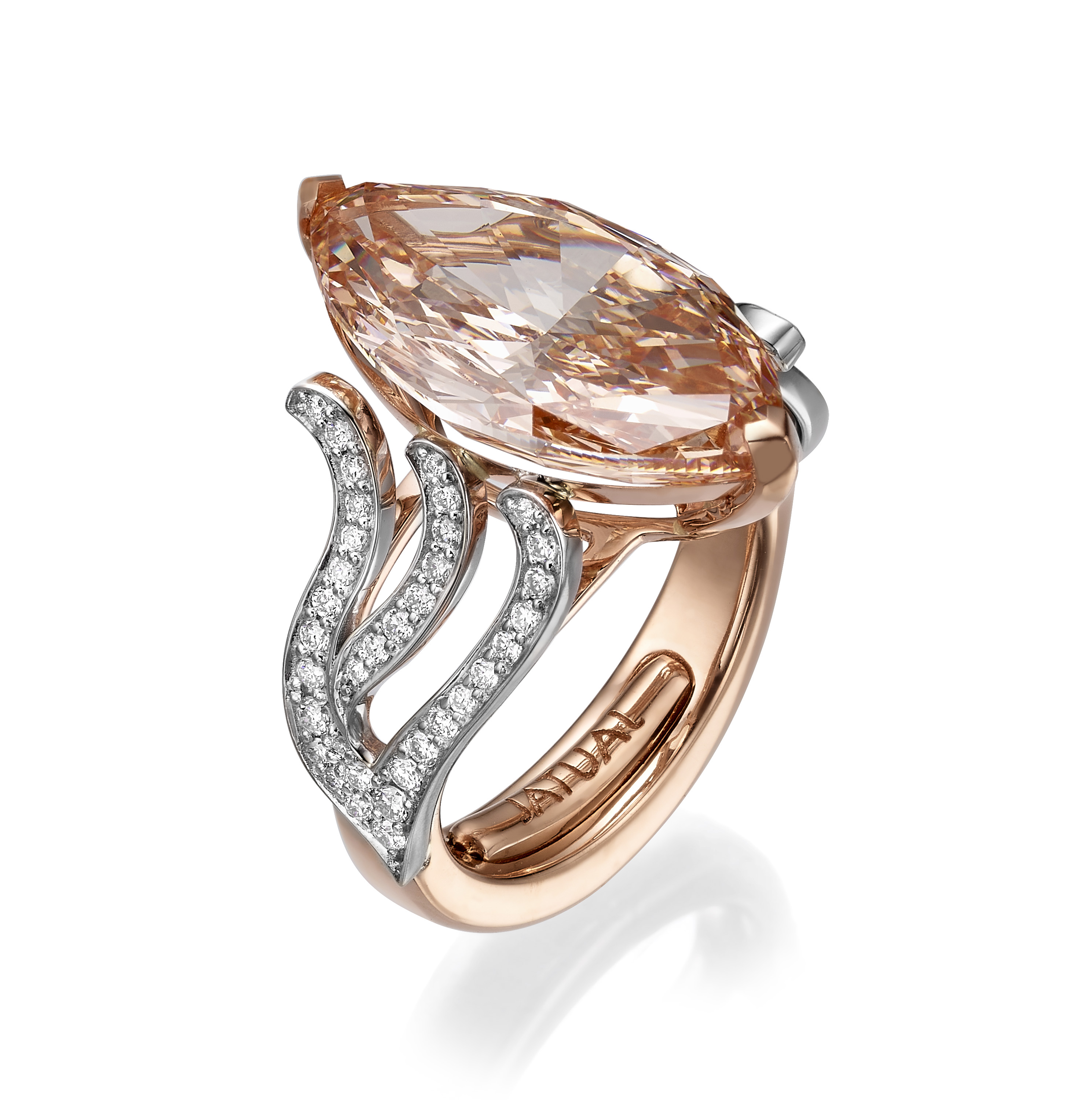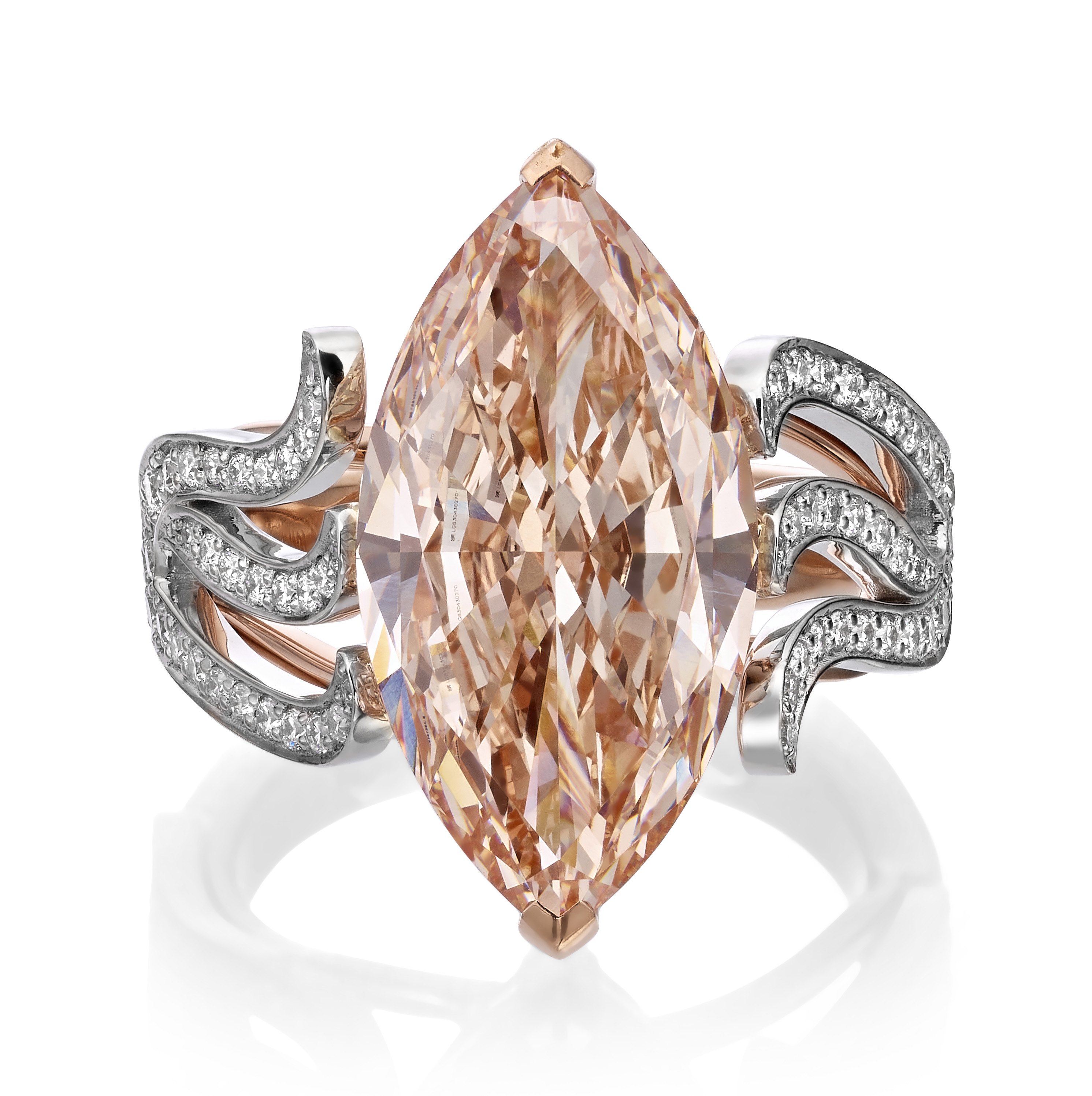RING SET WITH 10.32 CARAT FANCY INTENSE PINK MARQUISE SHAPE VS1 AND 70 LGDIAMONDS 0.48 CARAT. IN 18 KARAT ROSE & WHITE GOLD