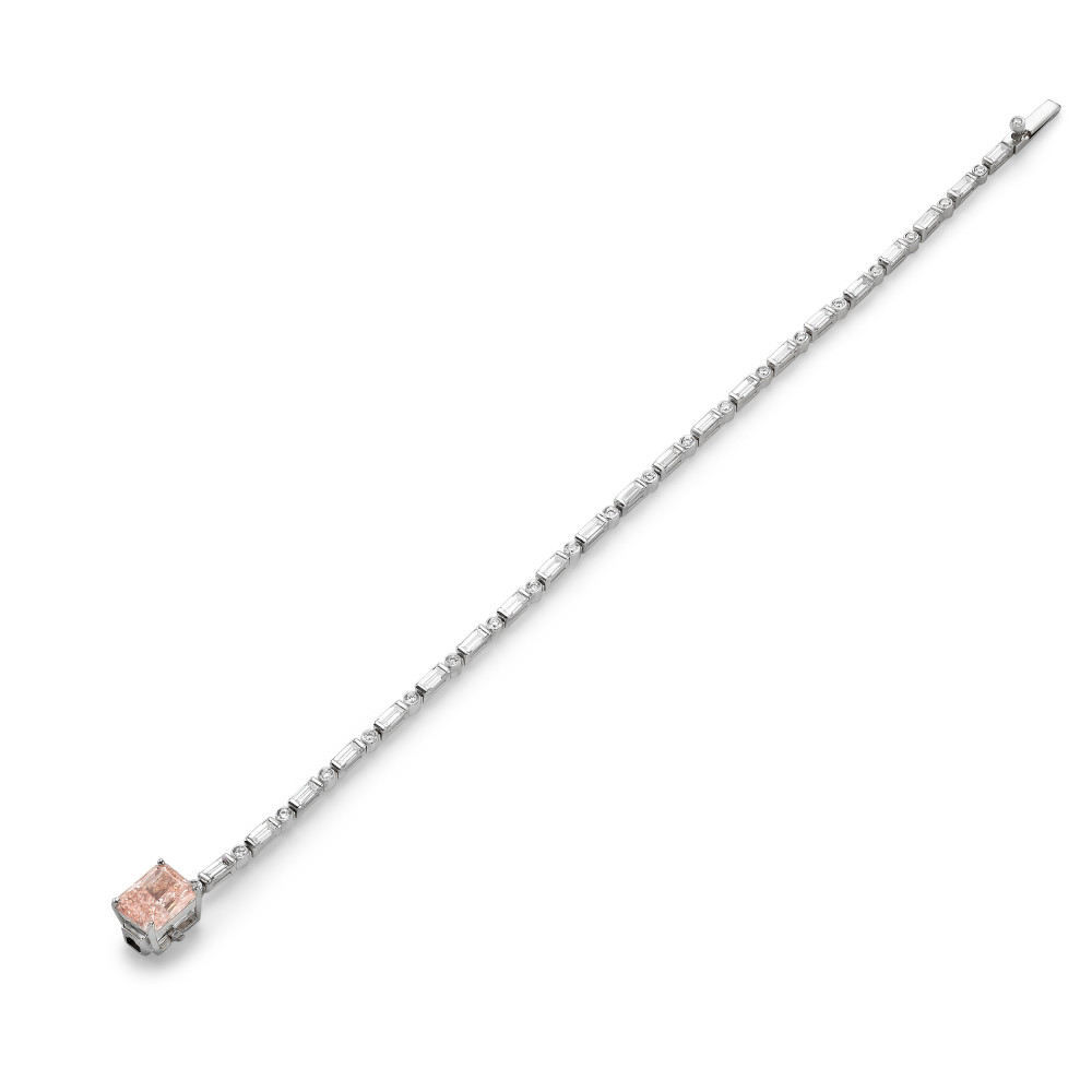 BRACELET SET WITH FANCY INTENSE PINK RADIANT LG DIAMOND, 2.93 CARAT, VS1 CLARITY ACCOMPANIED BY A CHAIN OF 43 BAGUETTE & ROUND BRILLIANT LG DIAMONDS