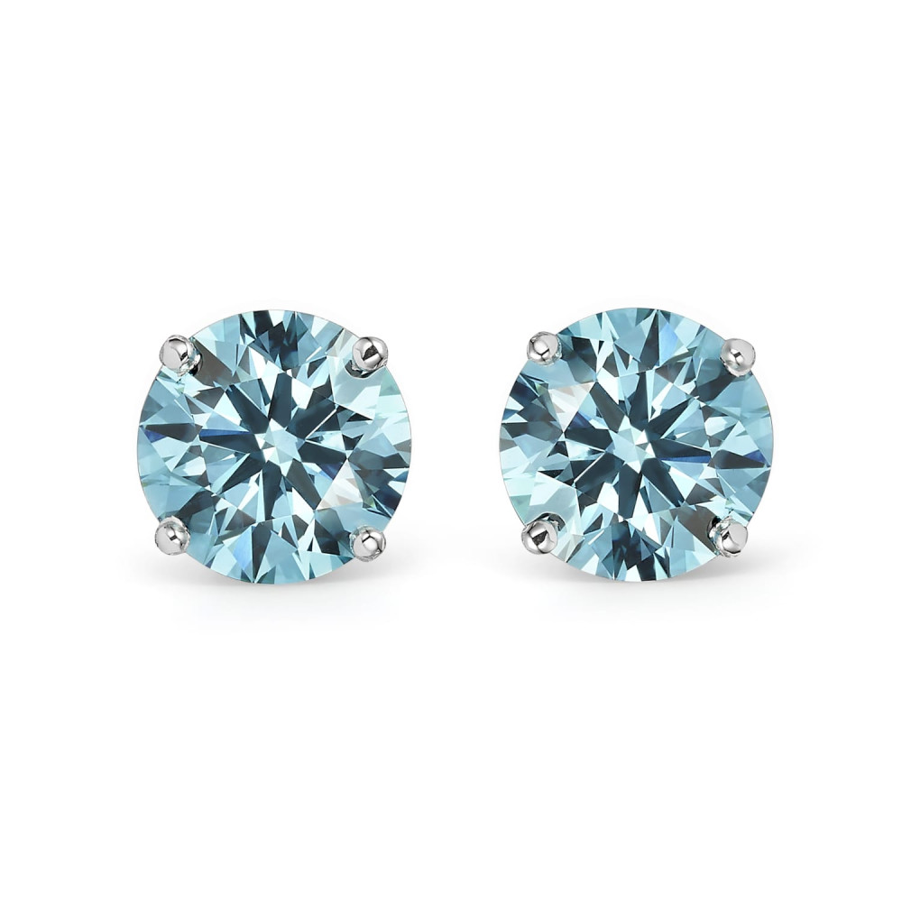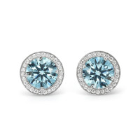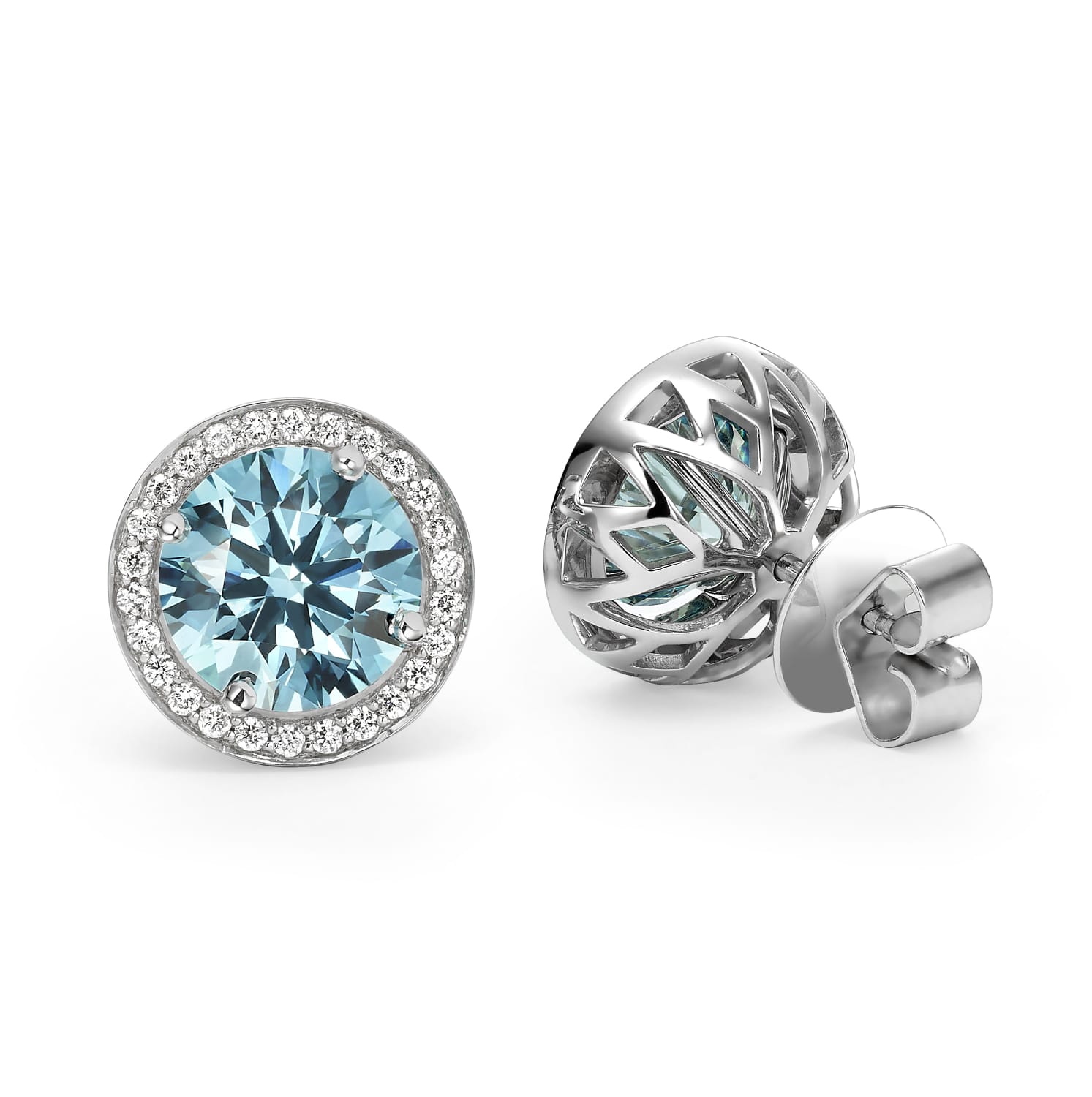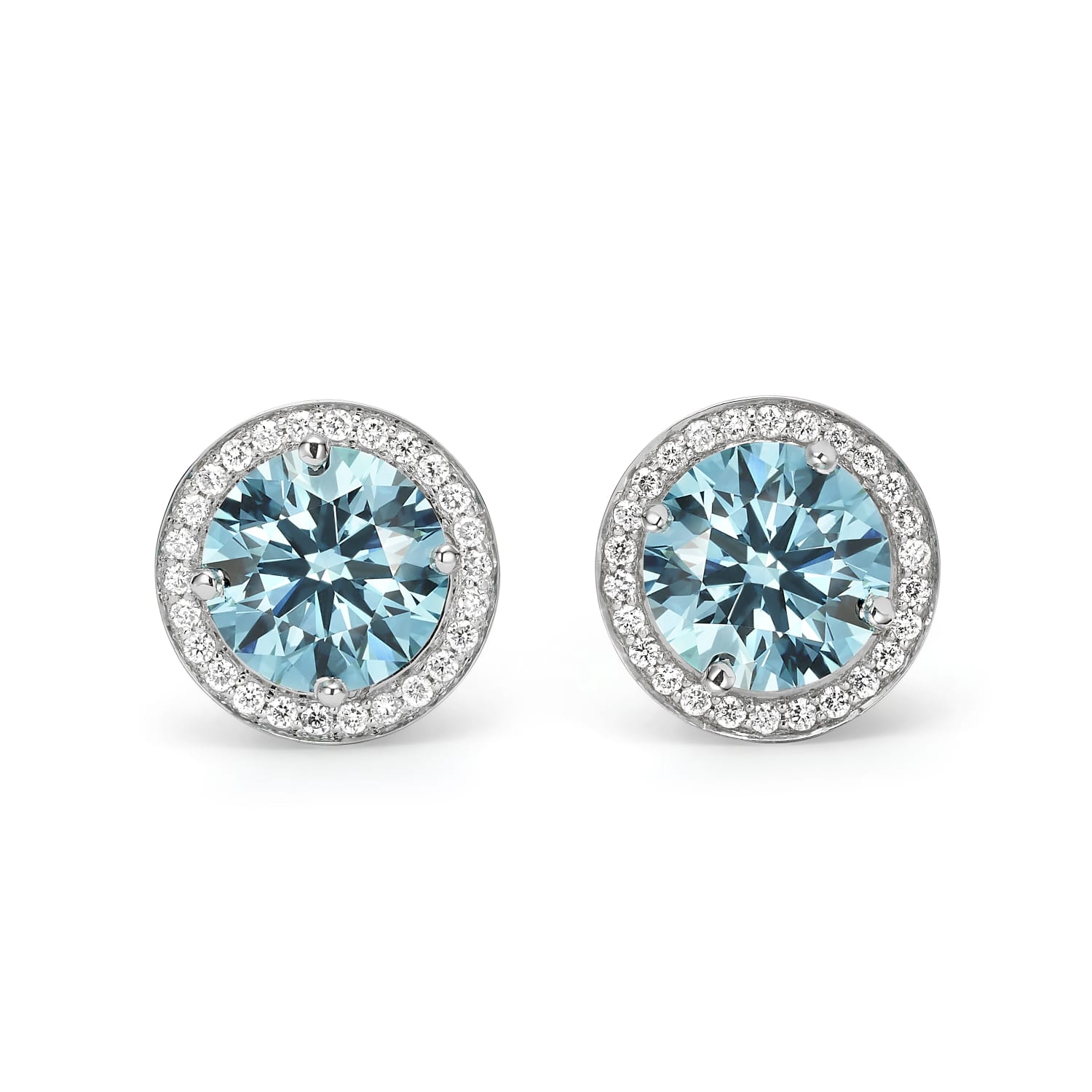 CONVERTIBLE EARRINGS SET WITH ROUND BRILLIANT SHAPE LG DIAMONDS, 4.42 CARAT TOTAL WEIGHT, FANCY VIVID BLUE COLOR, VS1 CLARITY, ACCENTED BY 52 ROUND BRILLIANT SHAPE DIAMONDS. IN 18 KARAT WHITE GOLD.