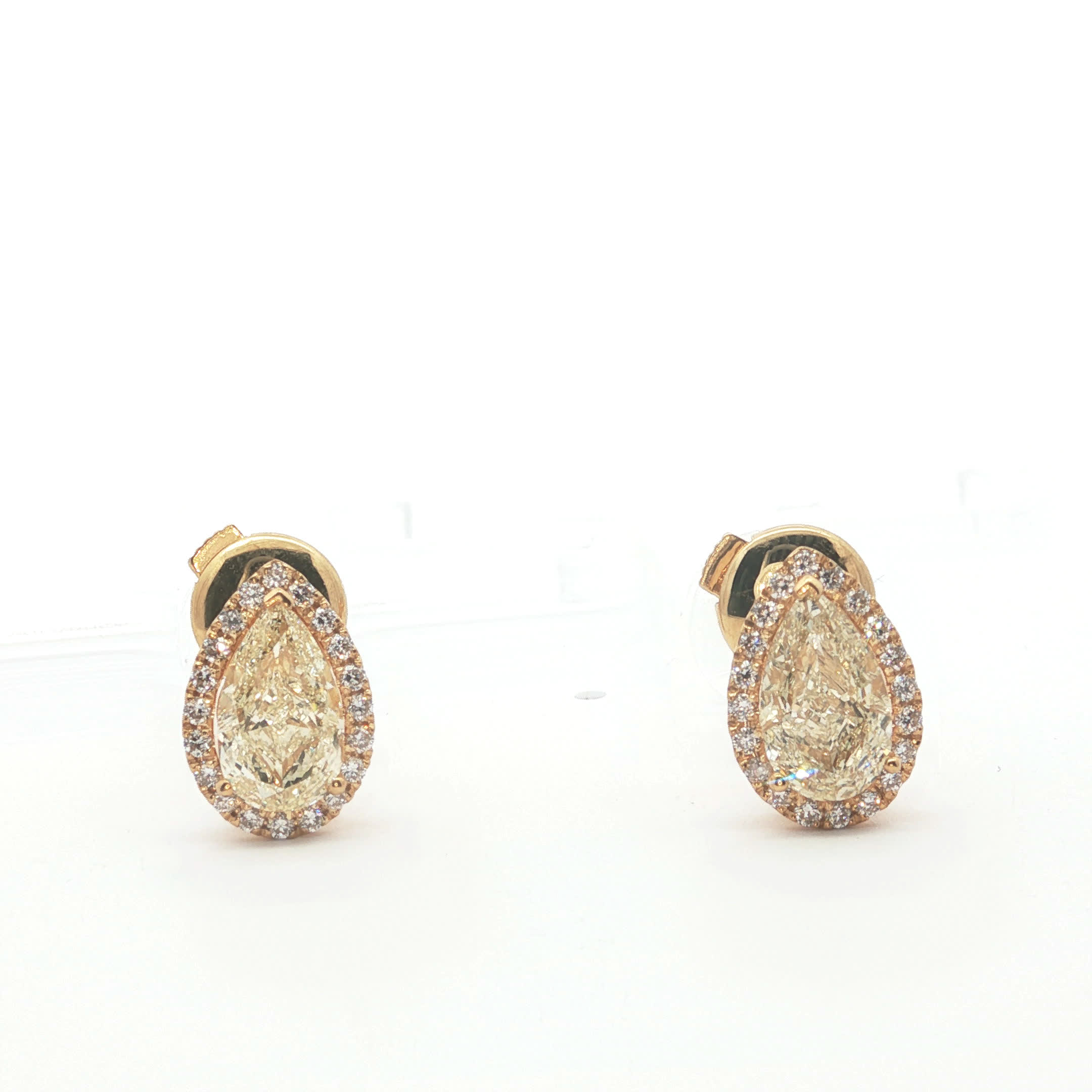 Elevate your elegance with these pear cut stud earrings, crafted in lustrous rose gold. Showcasing pear shaped fancy very light yellow diamonds with brilliant cutting style, these earrings exude sophistication and charm. Perfect for adding a touch of understated luxury to any ensemble, these exquisite studs are a timeless addition to your jewelry collection.