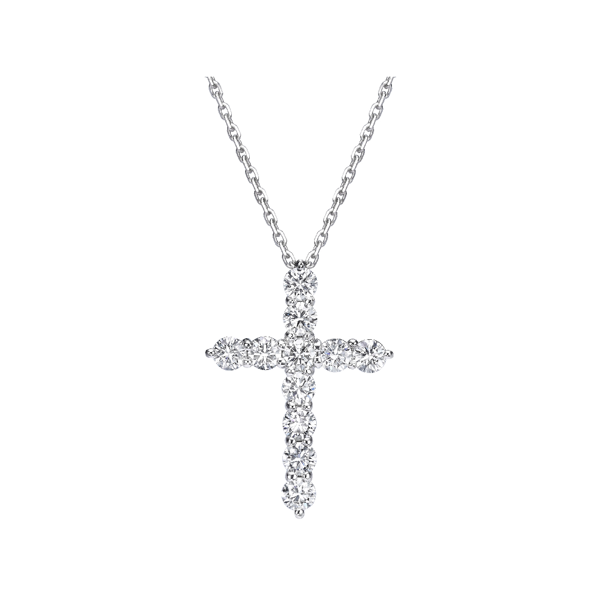 Set in 6.93g of 18K white gold, this pendant features 11 round brilliant lab grown diamonds totaling 2.9ct and 86 accent lab grown diamonds of 0.2ct. Totaling 3.1ct and 7.55g, these stones offer D E color and VVS1 VVS2 clarity.
