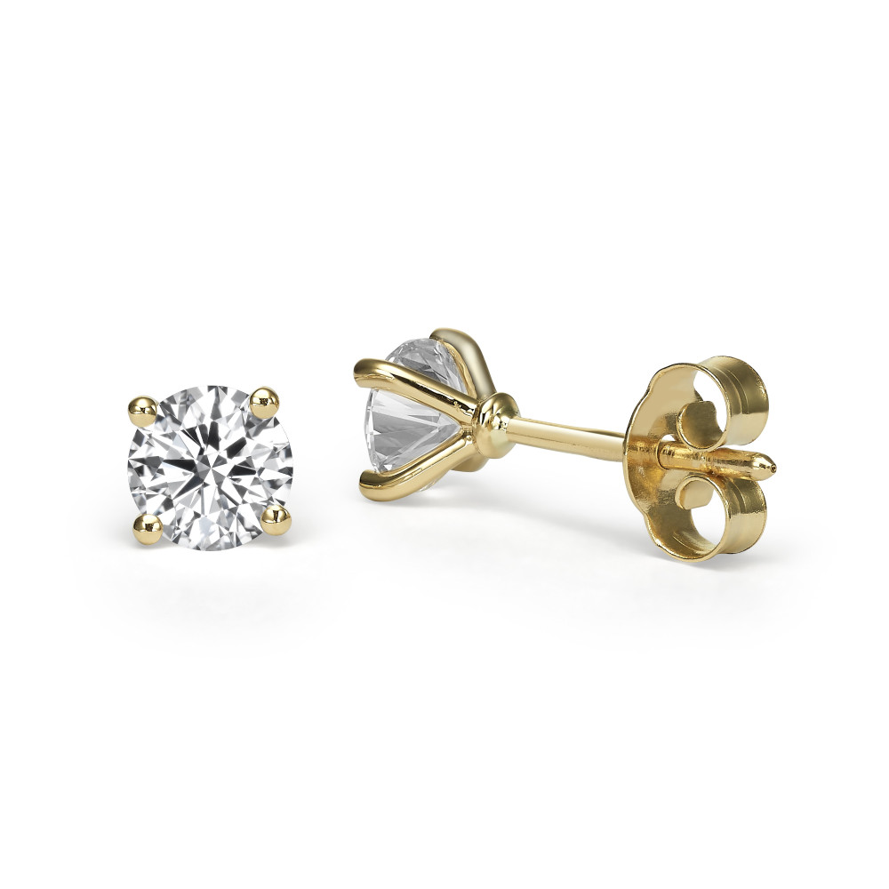 STUDS SET WITH ROUND BRILLIANT SHAPE LGDIAMONDS 1.02 CARAT F COLOR VS1 CLARITY.18 KARAT YELLOW GOLD