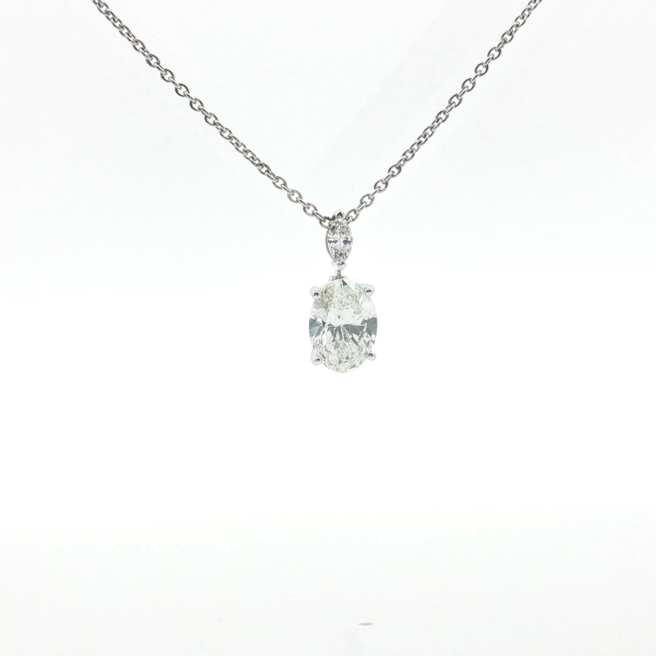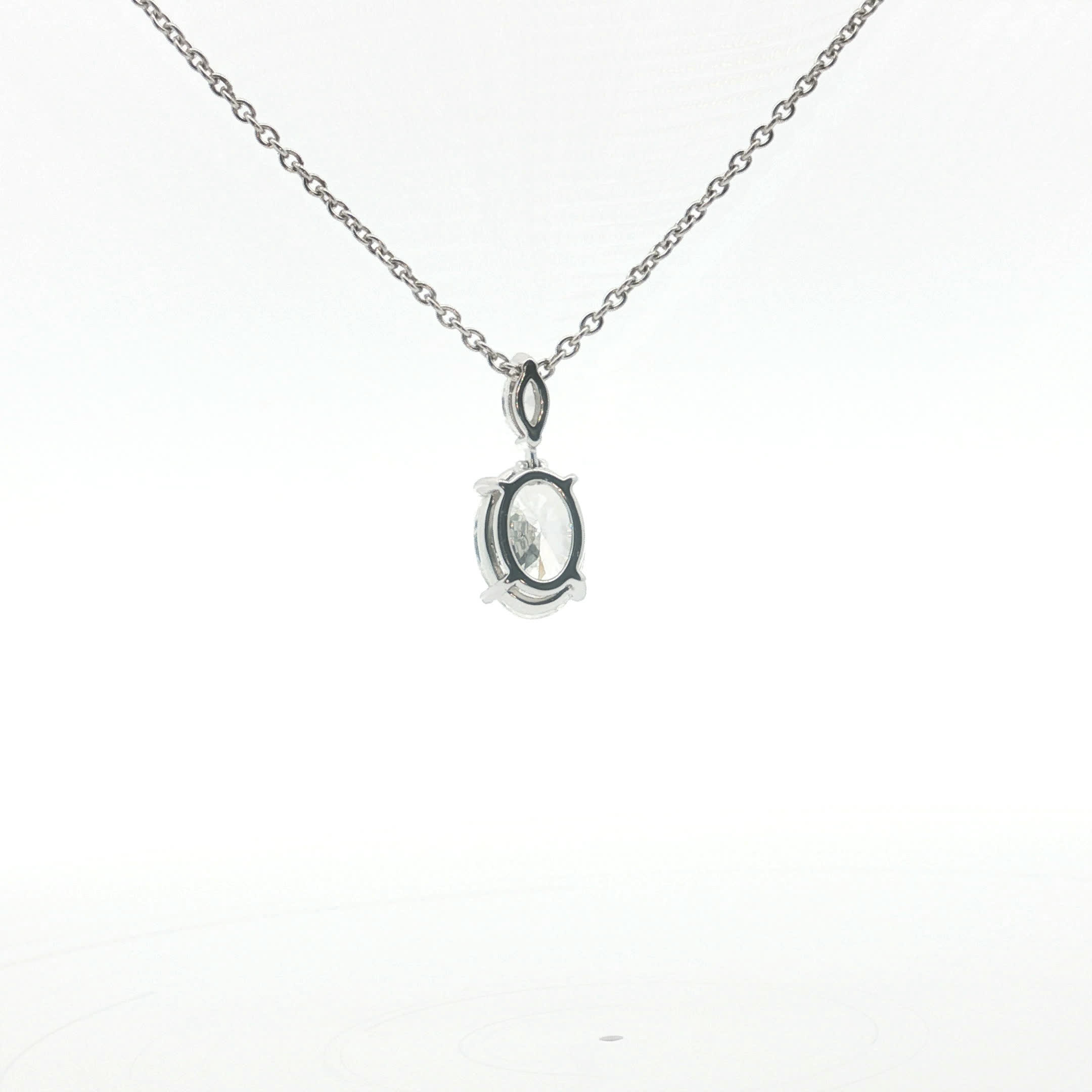 Elevate your style with this elegant diamond pendant necklace. Featuring a beautifully cut oval diamond in a prong setting, this necklace exudes sophistication. The brilliant cutting style enhances the diamond's natural sparkle. Crafted in white gold, this necklace is a timeless addition to any jewelry collection.