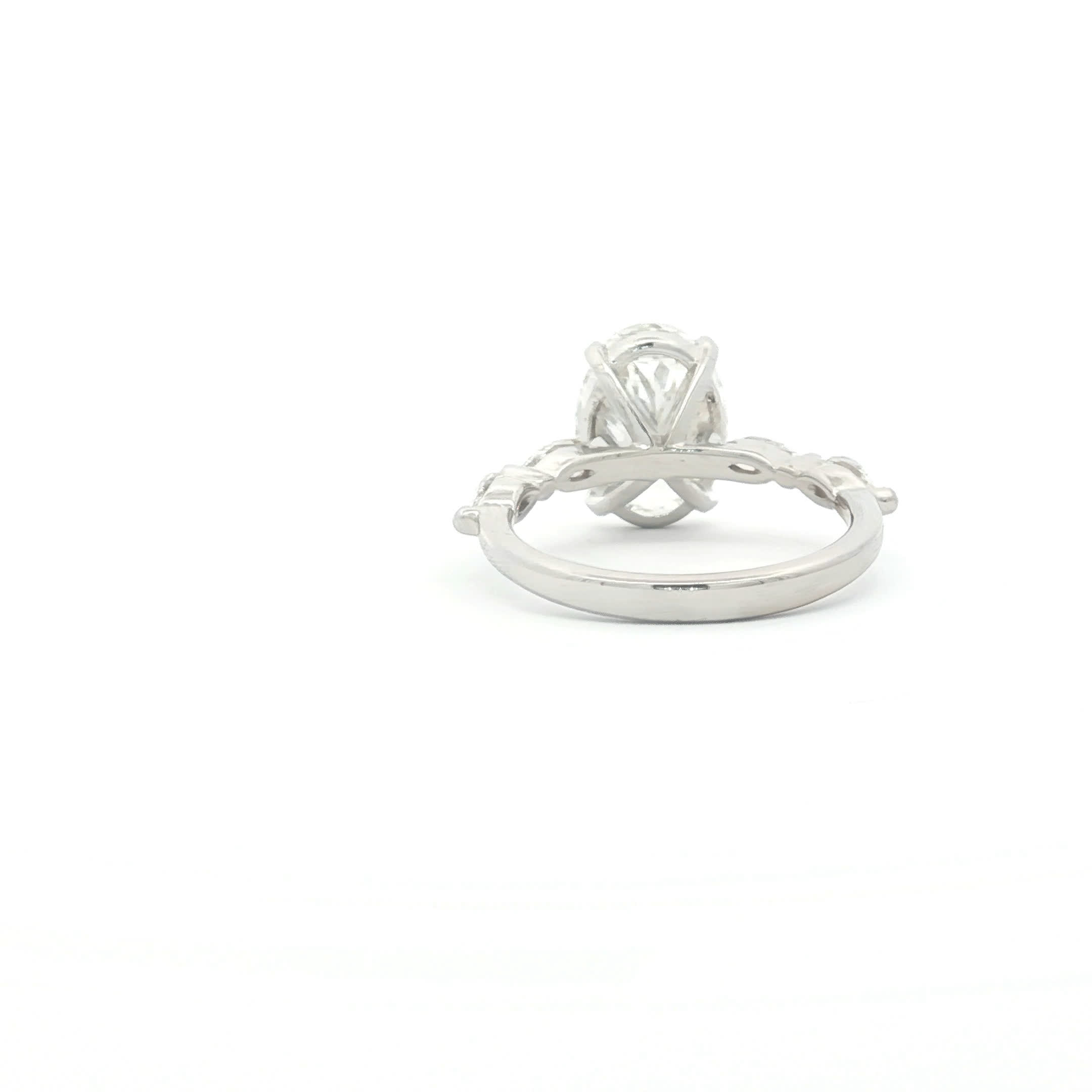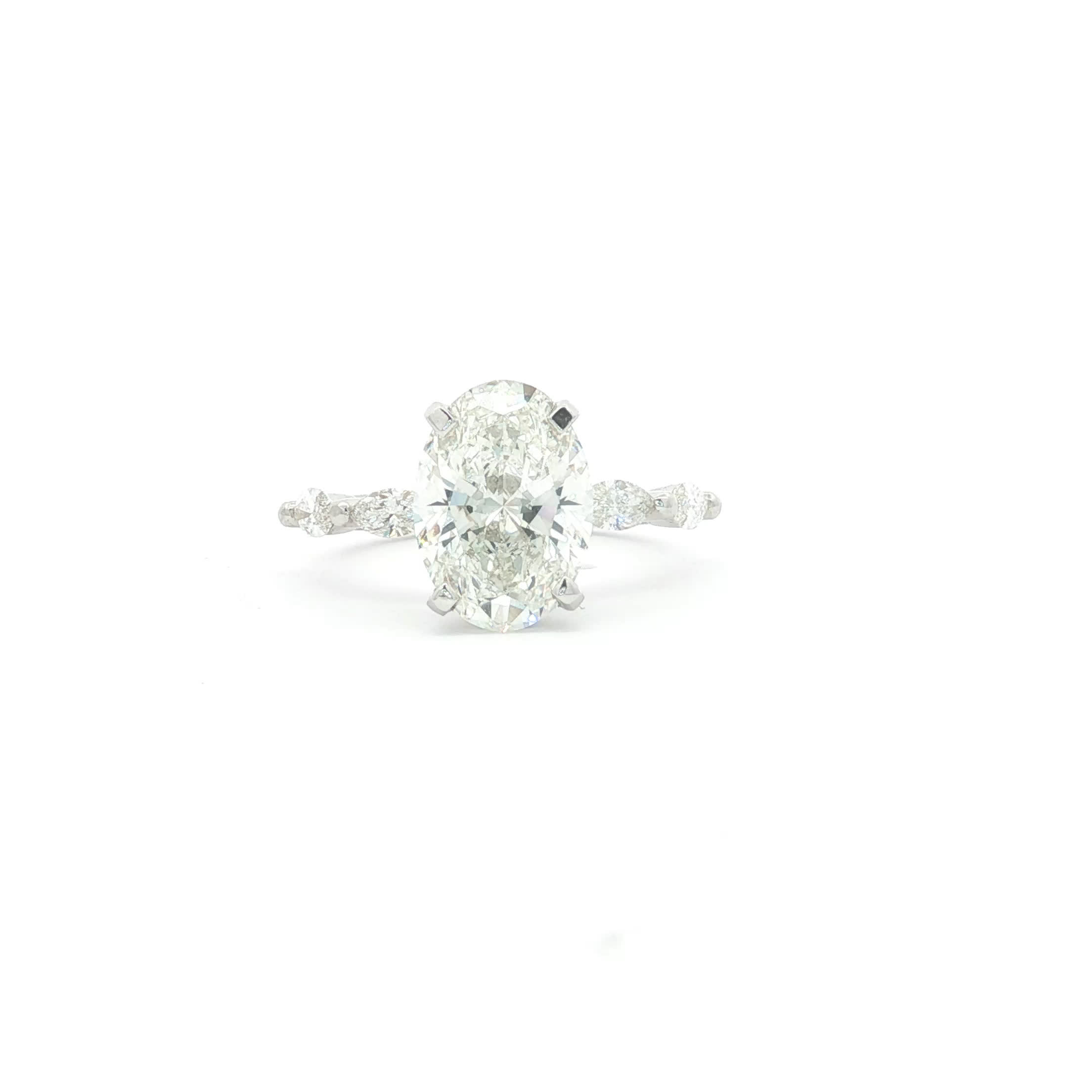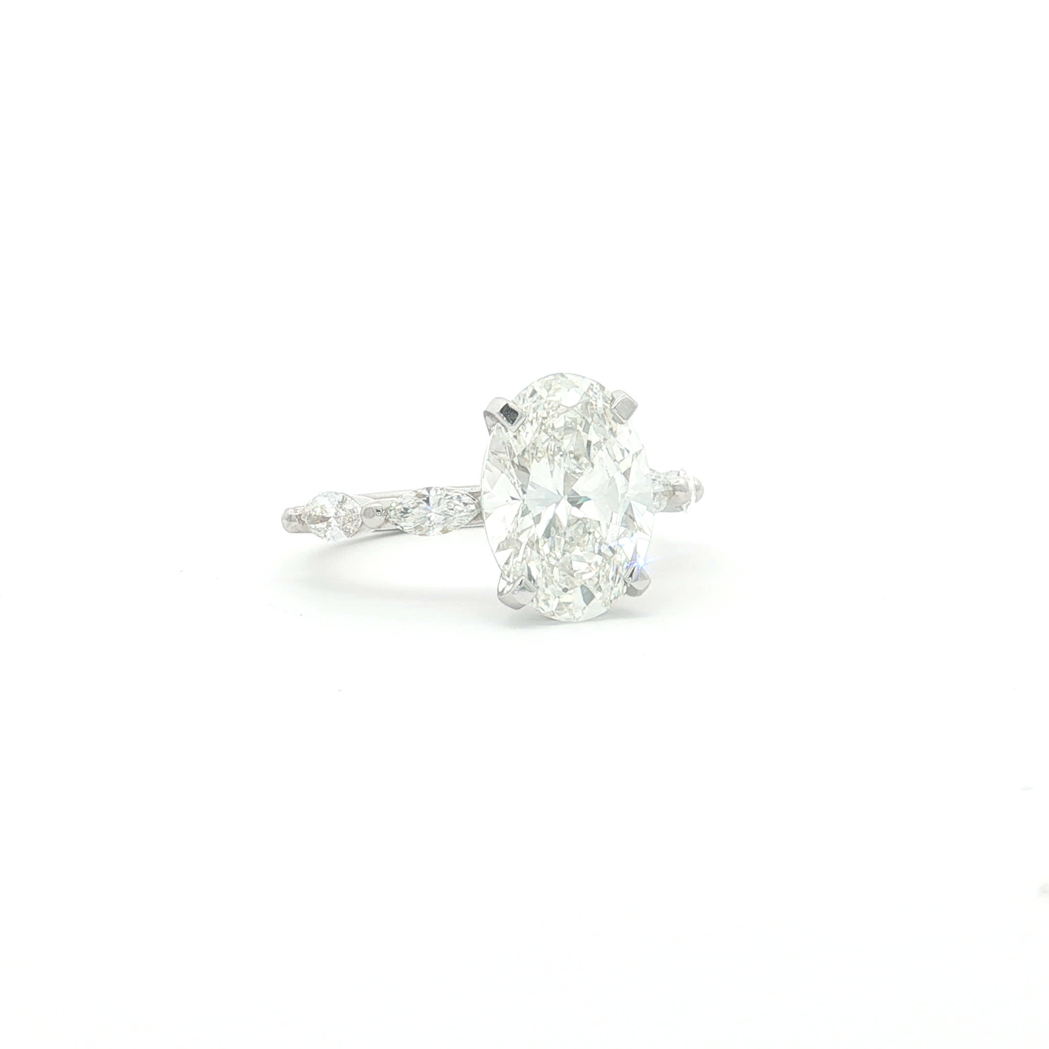 This exquisite ring features a meticulously crafted diamond band in a lustrous white gold hue. The centerpiece is a brilliant oval cut diamond, radiating exceptional fire and scintillation. This ring is a testament to refined elegance and superior craftsmanship.