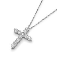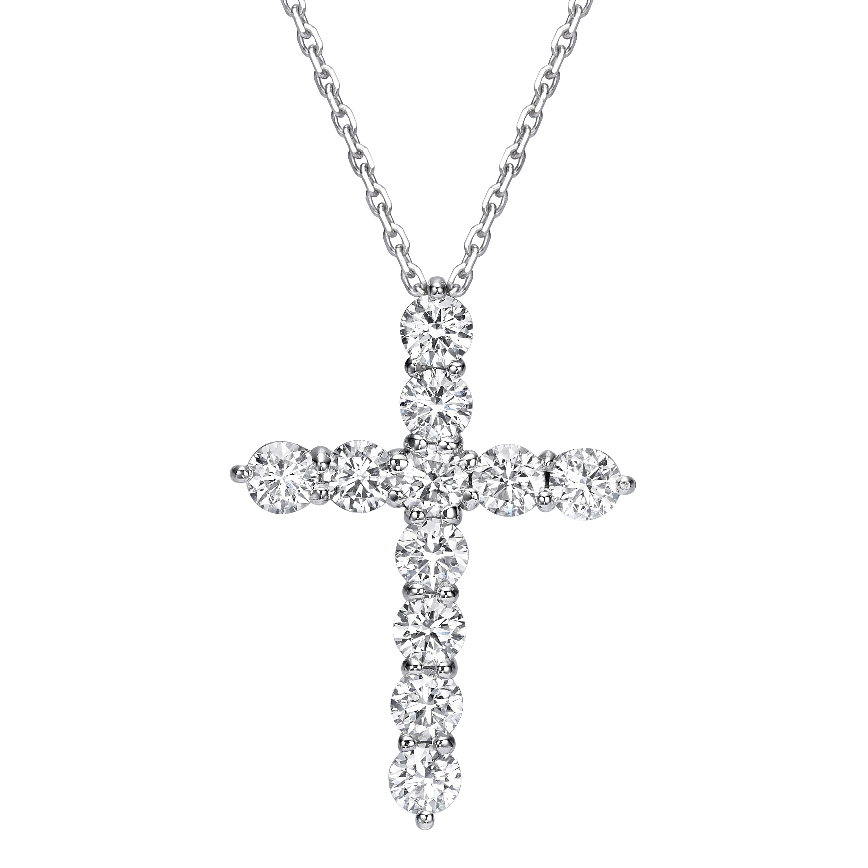 CROSS PENDANT SET WITH 11 ROUND BRILLIANT LG DIAMONDS, A TOTAL OF 2.90 CARAT, D-E COLOR, VVS CLARITY ACCOMPANIED BY 86 LG DIAMONDS SET IN LOGO. IN 18 KARAT WHITE GOLD