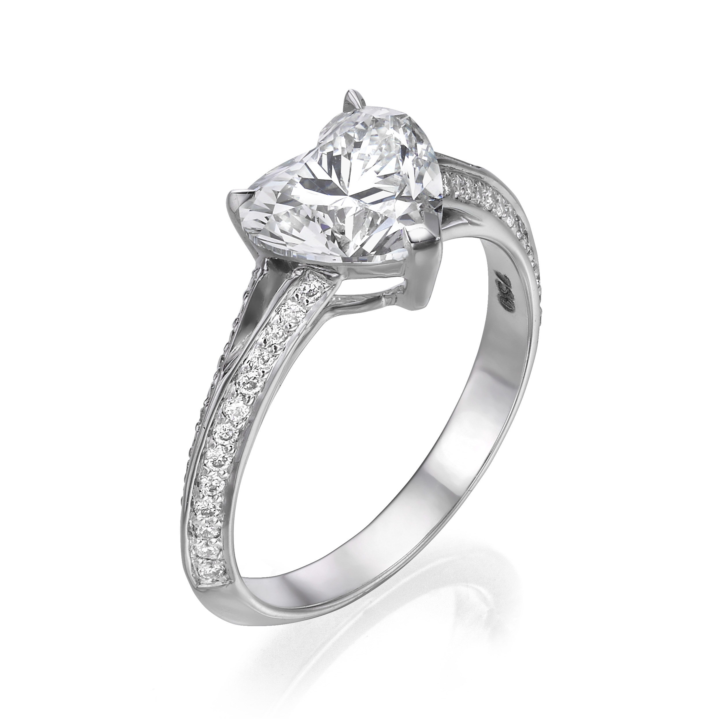 RING SET WITH HEART SHAPED LG DIAMONDS, 2.03 CARAT TOTAL WEIGHT, F COLOR, VVS2 CLARITY ACCENTED BY 53 LG DIAMONDS. IN 18 KARAT WHITE GOLD