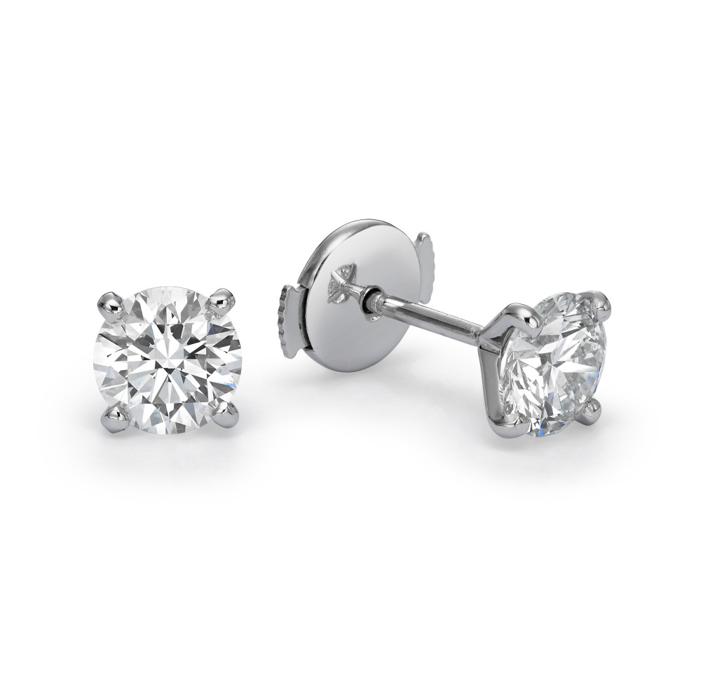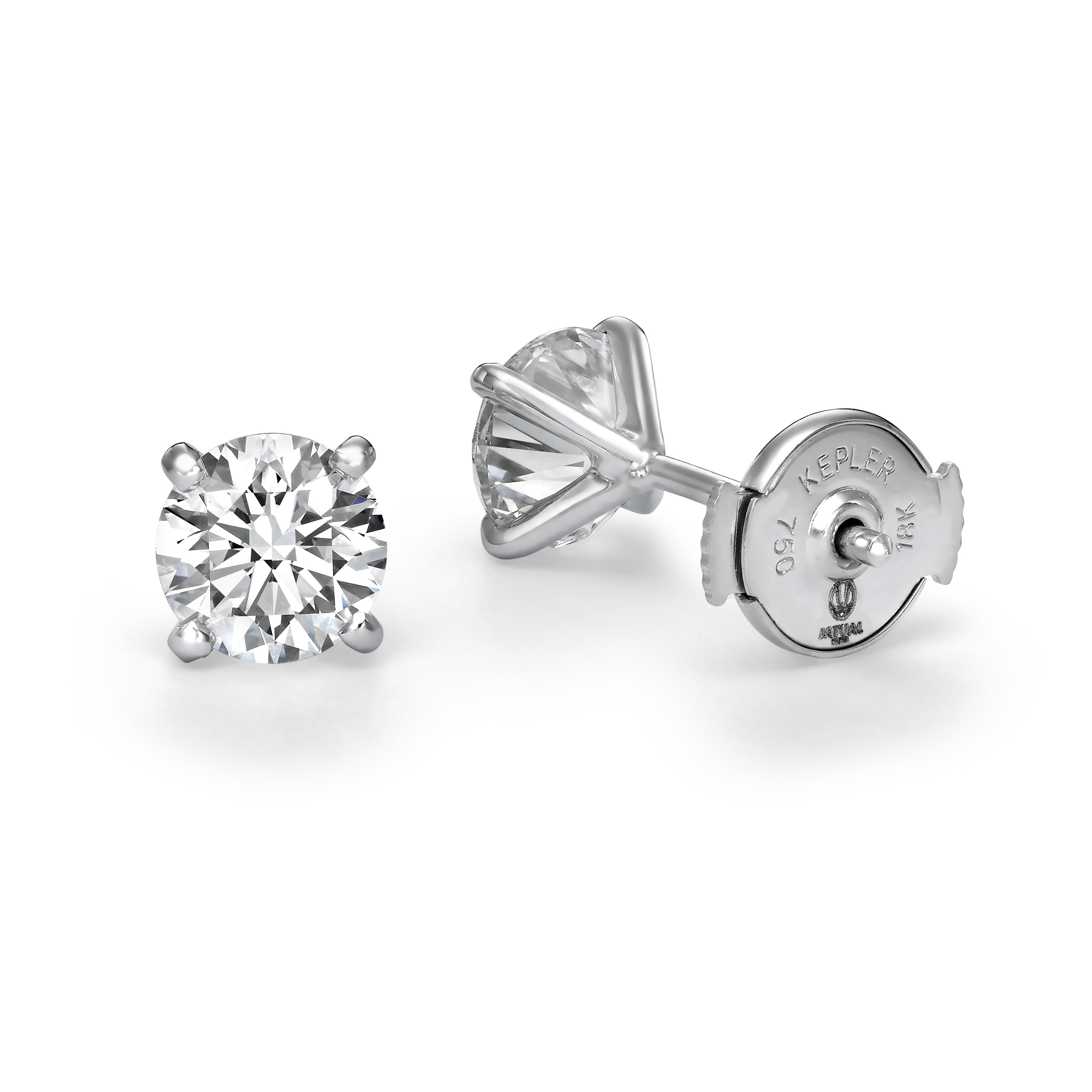 STUDS SET WITH ROUND BRILLIANT SHAPE LG DIAMONDS, 4.05 CARAT, E COLOR, VS1 CLARITY. IN 18 KARAT WHITE GOLD.