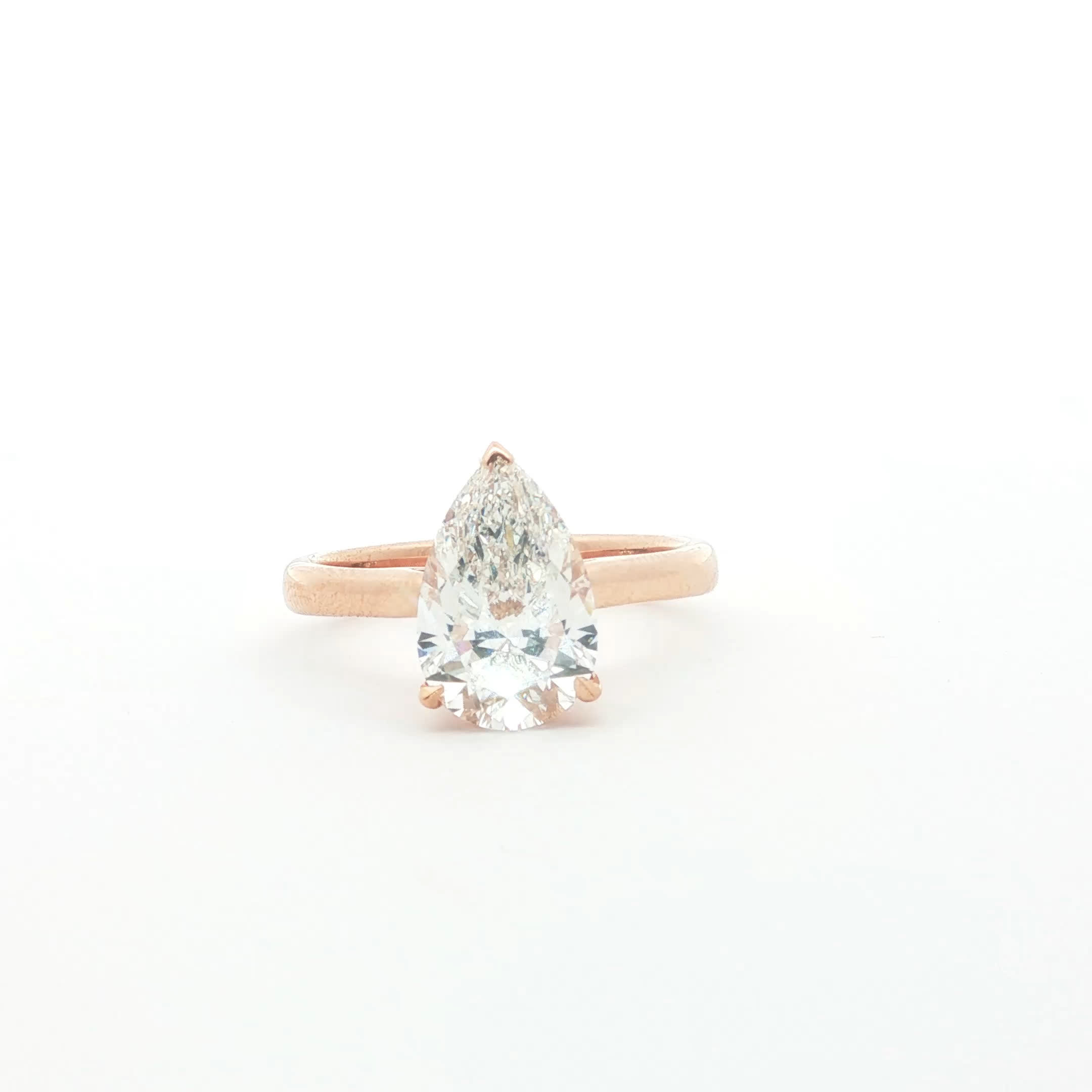 Exquisitely crafted, this solitaire ring features a brilliant pear cut diamond set in a delicate rose gold band. The minimalist design elegantly showcases the stone's unique silhouette and exceptional sparkle. A perfect blend of classic style and modern simplicity, this piece offers timeless appeal.
