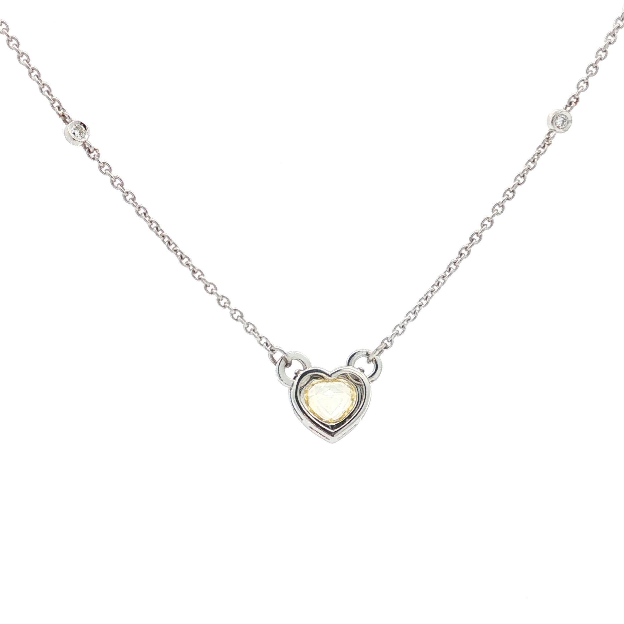 Exquisite white gold chain necklace featuring a captivating heart shaped diamond. The diamond showcases a brilliant cutting style. The chain is crafted from high quality silver and finished with white gold for a sophisticated aesthetic. This necklace exudes elegance and charm, perfect for adding a touch of luxury to any ensemble.
