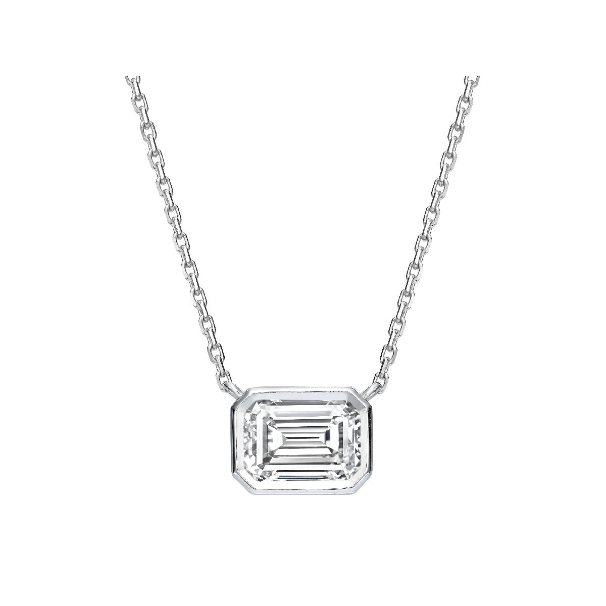 Elevate your style with this exquisite diamond necklace. Featuring a meticulously step cut emerald shape diamond, set in 18k white gold. The pendant gracefully hangs, showcasing the diamond's unparalleled brilliance and step-cut facets. A timeless piece, radiating sophistication and modern elegance.