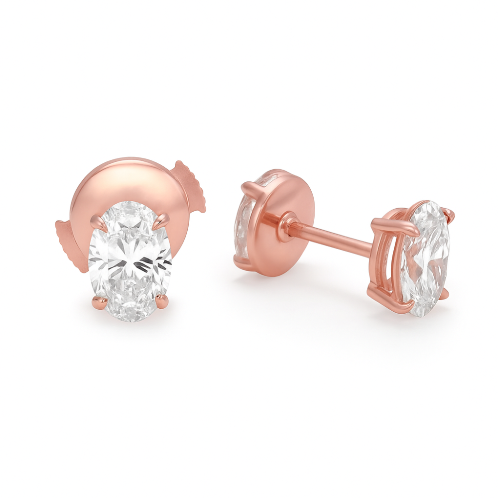 STUDS SET WITH OVAL SHAPE LGDIAMONDS 1.10 CARAT E COLOR VVS2 CLARITY 18 KARAT ROSE GOLD