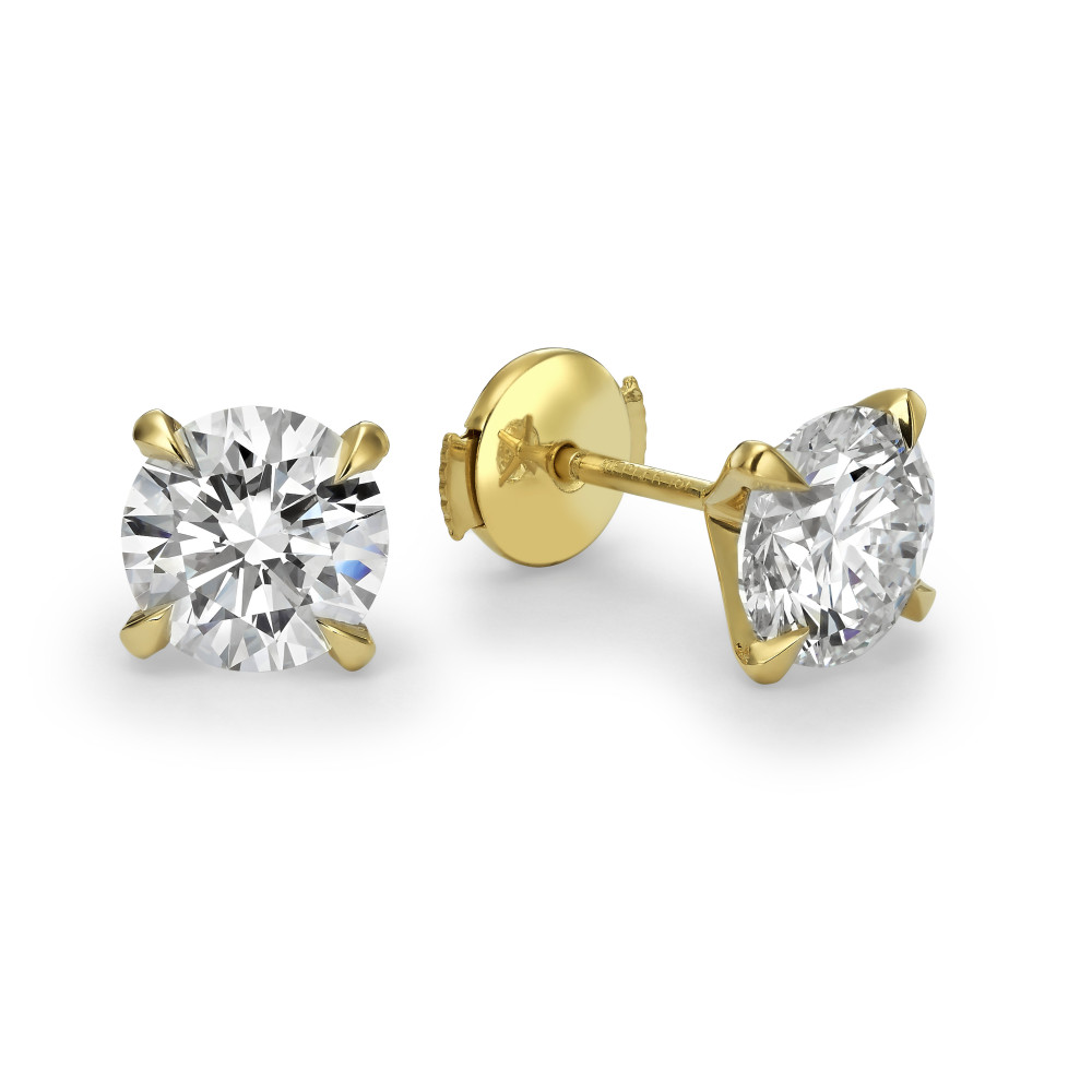 STUDS SET WITH ROUND BRILLIANT SHAPE LG DIAMONDS, 2.05 CARAT, E COLOR, VVS2 CLARITY. IN 18 KARAT YELLOW GOLD.